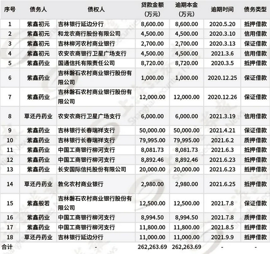 在更早的9月15日,紫鑫药业披露了最新的债务逾期进展。截至9月15日,公司逾期债务金额合计约为26.23亿元,占最近一期经审计净资产的70.16%,占总资产的24.96%。逾期债务多达十数笔,有的单笔金额仅为1000万元。