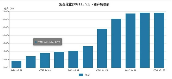 事实上,紫鑫药业的存货一直呈增加态势,从10年前的不足10亿元,已经增至目前的近70亿元。