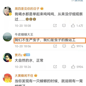 有网友评论:“我们不生产虫子,我们是虫子的搬运工”“农夫山泉可别甩锅大自然”。