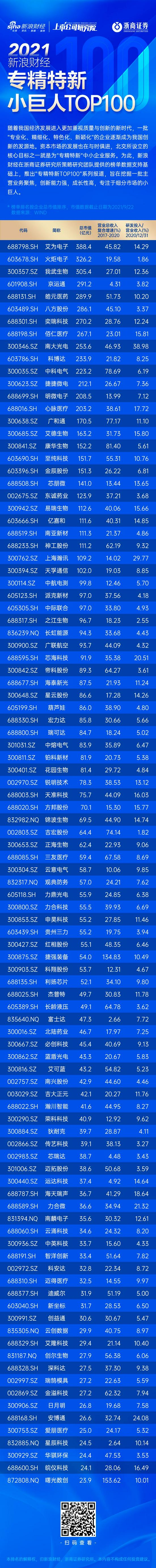 引言:随着我国经济发展进入更加重视质量与创新的新时代,一批“专业化、精细化、特色化、新颖化”的企业逐渐成为我国创新的发源地。资本市场的发展也在与时俱进,北交所设立的核心目标之一就是为“专精特新”中小企业服务。为此,新浪财经推出“专精特新TOP100”系列报道,旨在挖掘一批主营业务聚焦,创新能力强,成长性高,专注于细分市场的小巨人。