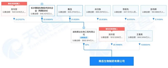 天眼查显示,除汉森制药之外,刘令安还实际控制南岳制药。