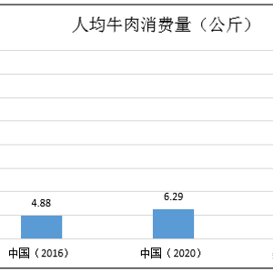 《中国农业展望报告》显示,2019年我国牛肉消费量为833万吨,同比增长11.36%,即使在疫情影响消费的2020年,牛肉消费量也同比增长6.1%。目前我国人均牛肉消费量仅6.29公斤,尽管较2016年的4.88公斤平均每年稳步增长6.6%,但相较于2012年就达到了36公斤的美国来说,提升空间仍然巨大,且目前国产牛肉还有两百万吨的缺口依赖进口。
