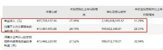昨日晚间,同花顺也公布了公司三季报。从数据来看,今年前三季度,同花顺实现营业收入21.85亿元,同比增长31.29%;归属于上市公司股东的净利润9.91亿元,同比增长28.31%。其中,第三季度实现归属于上市公司股东的净利润4.13亿元,同比增长24.19%。