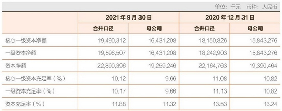 而期末该行资本充足率、一级资本充足率、核心一级资本充足率则分别为11.88%、10.17%、10.12%,较上半年末分别下降0.1个百分点、0.05个百分点、0.05个百分点。同时,也较上年末分别下降1.65个百分点、0.96个百分点、0.96个百分点。