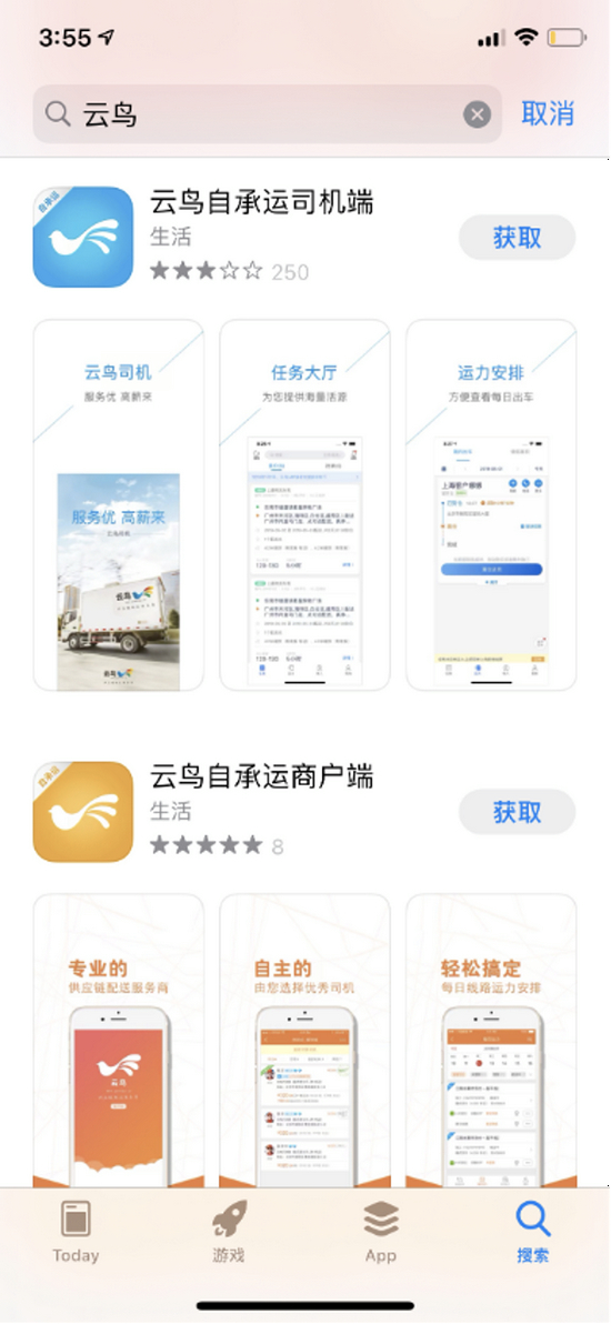 在应用商店,记者搜索到了云鸟自承运司机端和商户端两个APP。值得注意的是,“云鸟自承运司机端”APP的评分仅2.9分,大部分评论集中在2020年之前,“云鸟自承运商户端”APP的仅有8个评分,所有的评论均是在四五年前。