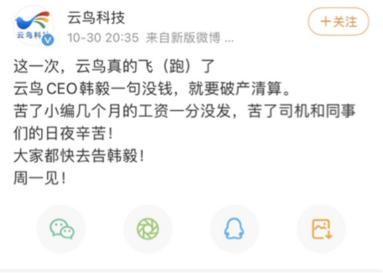 员工官微发文向老板讨薪,曾经的“独角兽”云鸟科技缘何爆雷?