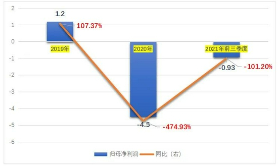 另一边的销售净利率亦由此前的15%左右突降至个位数,2018年甚至转正为负为-59.57%,在2019年实现3.82%的净利率后又再度转负。