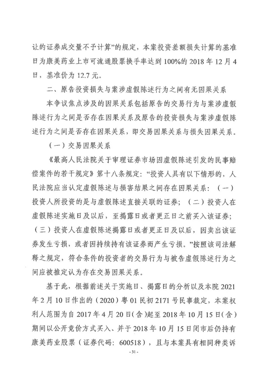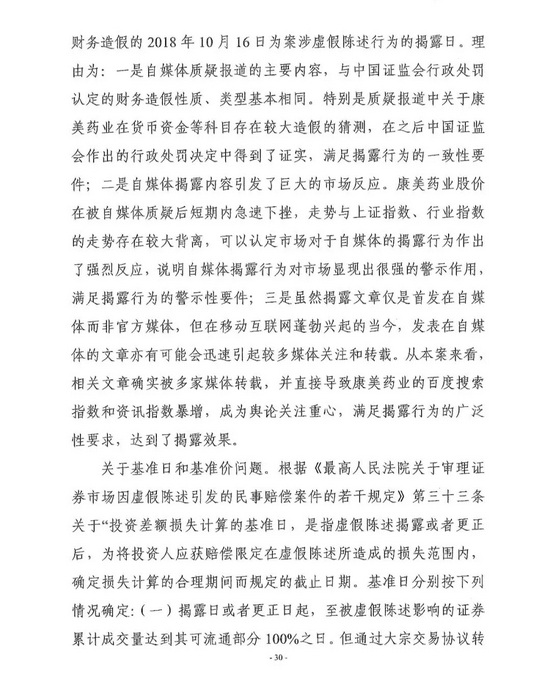 对于原被告双方争议最大的“案涉虚假陈述行为的揭露日”,广州中院判决认定为2018年10月16日,该日期是计算投资者获赔金额的“关键”。