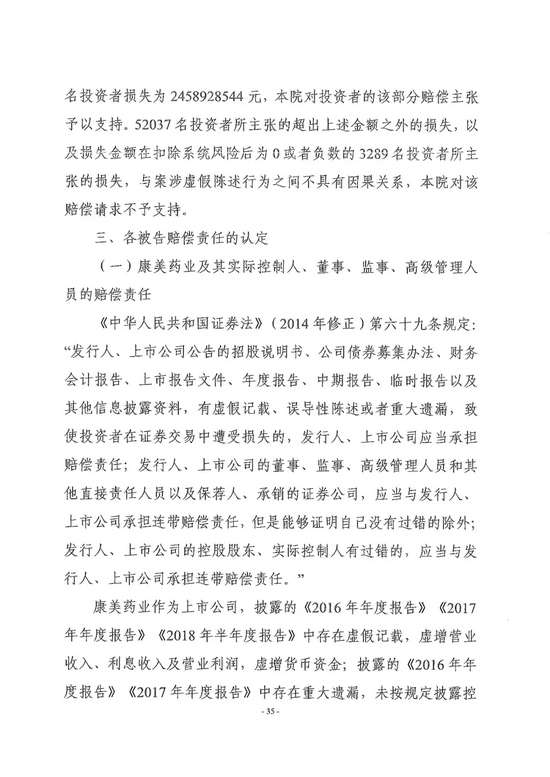 康美药业作为上市公司,承担24.59亿元的赔偿责任;