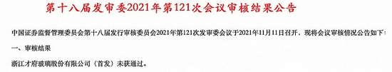 上周的过会率并不高,总共7家公司上会,其中有1家被否1家暂缓。其中被否的才府玻璃,可谓“一鼓作气,再而衰,三而竭”,该公司2017年就在排队,好容易排到了却在2019年6月“临阵脱逃”,于审核前撤回了材料。而后2020年才府玻璃IPO重启,但今年9月份上会时又遭遇暂缓表决,拖了2个月后,最终在11月折戟,无法叩开A股市场的大门。
