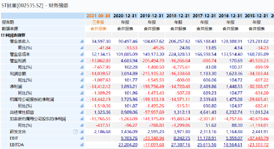 业绩方面,ST林重于10月30日披露三季报,公司2021年前三季度实现营业总收入3.5亿,同比下降41.8%,降幅较去年同期扩大;归母净利润亏损1.4亿元,上年同期为1024万元,未能维持盈利状态。