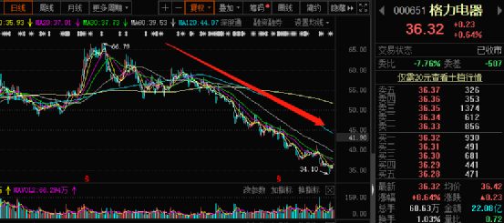 但270亿砸下去,格力的股价却是一片惨淡。至11月16日收盘,格力电器报36.32元,年内跌幅38.38%。