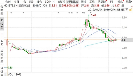长油在2019年1月8日重新上市,上市当天上涨298.8%。