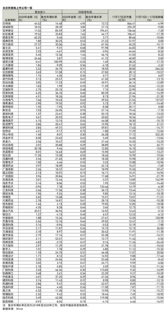 开市首日,有10只个股股价翻倍,其中同心传动(833454.BJ)涨幅高达493.05%,但同时有59只个股下跌。11月16日、17日,下跌个股数量分别为71只和37只。