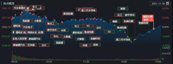 11月30日,A股三大指数走势分化,上证指数维持红盘震荡,创业板指高开低走。截至收盘,上证指数涨0.03%,报3563.89点,深证成指跌0.1%,报14795.73点,创业板指跌0.22%,报3495.59点;两市合计成交12218.7亿元,连续第28个交易日突破万亿元。个股方面,在可交易的A股中,上涨个股有2752只,下跌个股有1482只,平盘个股134只。此外,回顾本月三大指数的走势,上证指数期间累计涨0.47%,深证成指期间累计涨2.38%,创业板指期间累计涨4.33%。