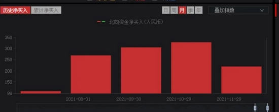 与此同时,北向资金11月30日合计净卖出34.11亿元。其中,沪股通净卖出21.85亿元,深股通净卖出12.26亿元。至此,11月份北向资金合计净买入184.9亿元。