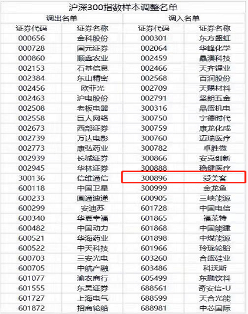 沪深300指数“上新” 医美龙头爱美客被纳入指数样本