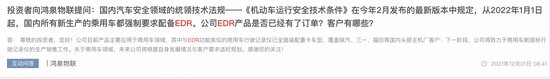 另外,美亚柏科、启明星辰也纷纷表示已经布局EDR业务,美亚柏科能够提供31个品牌3500多款车型的EDR数据,启明星辰的EDR销售增长200%。
