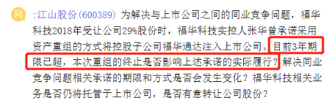 如今3年大限已至,而相关重组交易又宣告终止,投资者不免为其担忧。在互动平台上,有投资者就像公司提问,“目前3年期限已超,本次重组的终止是否影响上述承诺的实际履行?解决同业竞争问题相关承诺的期限和方式是否会发生变化?福华科技相关业务是否仍将托管于上市公司,是否有意转让公司股份?”