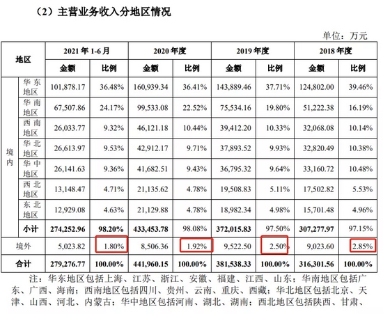 公司的产品也并没有在法国销售,近三年的境外营收均不到1亿元,2020年只有8506.36万元,占营收比1.92%。