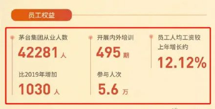 2020年贵州省国民经济和社会发展统计公报显示,城镇常住居民人均可支配收入中的工资性收入为20472元,同比上涨8%。茅台集团公布的社会责任报告显示,同年该集团的员工平均工资较上年增长约12%。