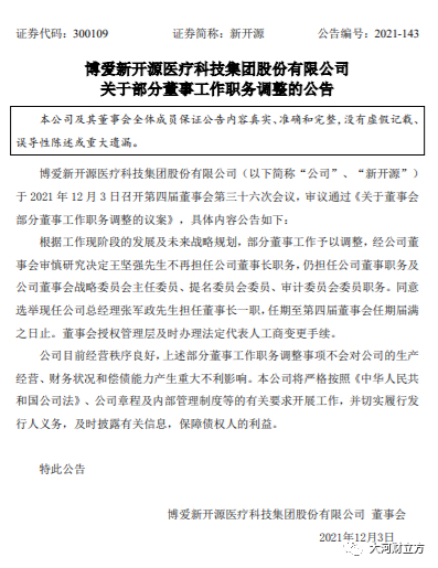 12月3日,随着一份换帅公告,博爱新开源医疗科技集团股份有限公司(以下简称新开源)董事会“内斗”撕下了最后的“遮羞布”。
