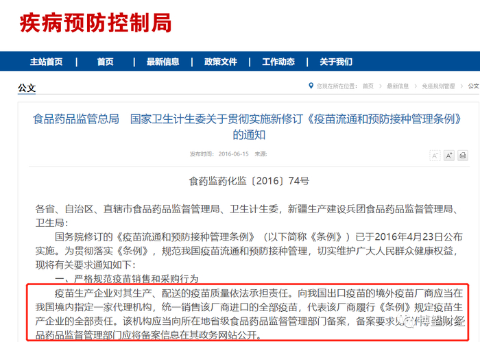 2016年,山东5.7亿元的非法疫苗大案震惊全国,引起了极大的民愤。当年6月,“国务院关于修改《疫苗流通和预防接种管理条例》的决定”公布,其核心修改内容为二类疫苗批发企业不能再经营疫苗,要求接种单位做到“票、账、货、款”一致;强化疫苗全程冷链储存、运输管理制度,并建立全程追溯系统;针对违法行为加大处罚及问责力度。