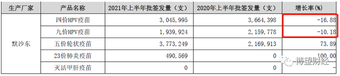 半年报显示,同比2020年上半年,智飞生物在今年上半年代理的默沙东四价和九价HPV疫苗的批签发数量增长率分别为-16.88%和-10.18%,都有一定幅度的下降,令市场加剧了这种担心。