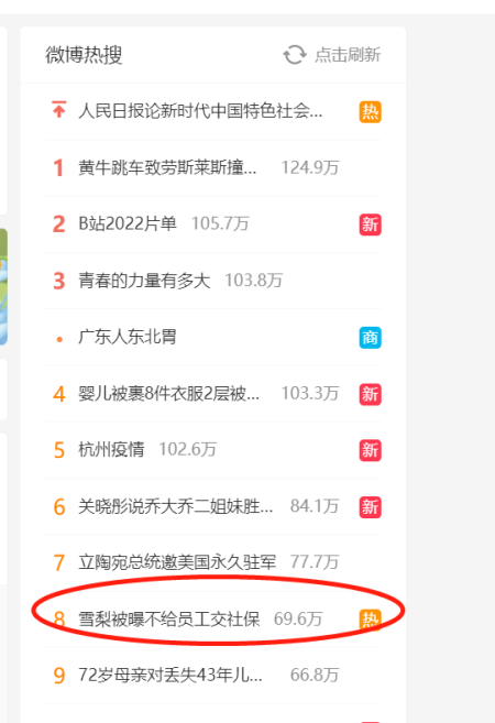 在被罚近亿元后,知名主播雪梨与搭档又因社交账号异常、公司经营业务陷入困境、不给员工缴社保登上微博热搜。