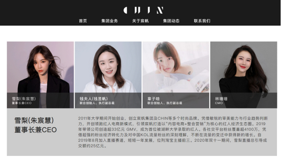 公开资料显示,自称“百亿身价女老板”的朱宸慧在2011年大学期间开始创业,创立宸帆集团及CHIN等多个时尚品牌。公司官网介绍,她在2019年带领公司创造超33亿元 GMV,成为首位被湖畔大学录取的红人。各社交平台粉丝覆盖超4100万,凭借超强的粉丝经济转化力,不断在流量的变迁中获得新的增长。自2019年8月加入直播赛道,短短一年发展,位列淘宝主播前三。2020年双十一期间,雪梨直播总引导成交额约25亿元。