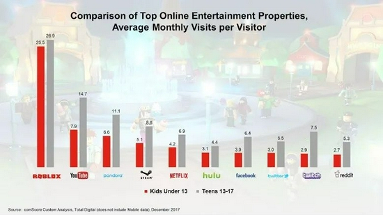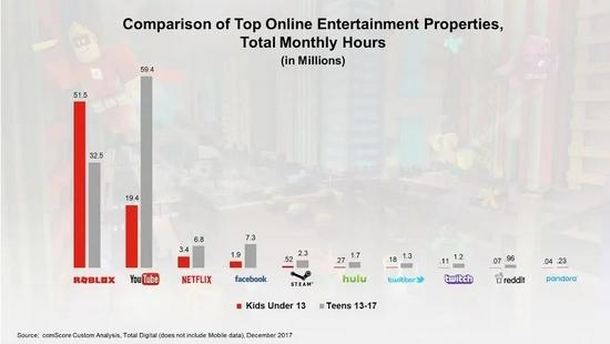 Roblox 的联合创始人兼首席执行官 Dave Baszucki表示:“Roblox 上的许多开发人员都是在这个平台上长大的,他们中的许多人现在开始在平台上谋生。”而事实证明,用户们尤其是孩子们非常擅长制作吸引其他用户的游戏。在全球范围内,Roblox 每月有超过 7000 万访问者。根据 comScore 的数据,6 到 12 岁的孩子在 Roblox 上花费的时间比互联网上的任何其他网站都多。在青少年中,它排名第二,仅次于谷歌旗下的 YouTube。