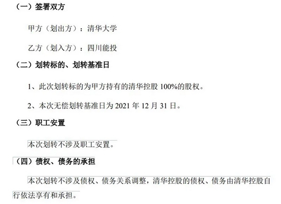 眼下清华大学拟将清华控股无偿“托付”给四川能投的同时,却未给四川能投带来“负担”。