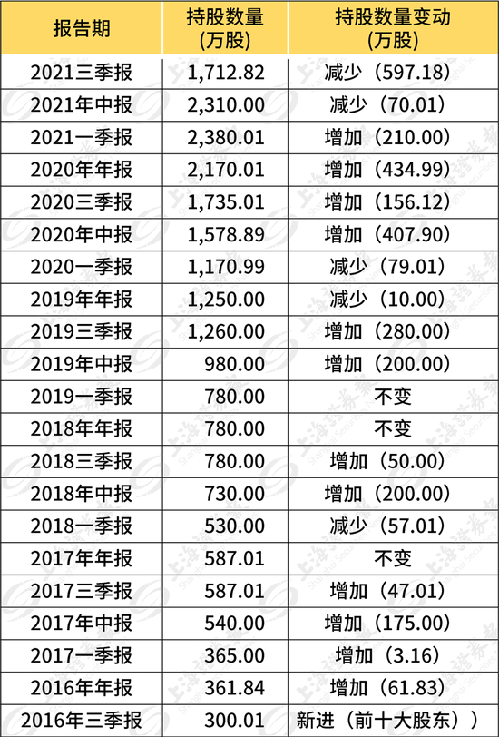 张坤是在2016年瞄准了苏泊尔。2016年三季度末,他管理的易方达优质精选重仓杀入前十大股东。自此之后,张坤频频加仓。从2018年二季度开始,易方达优质精选成为持有苏泊尔股数最多的公募基金产品,一直延续到今年三季度末。