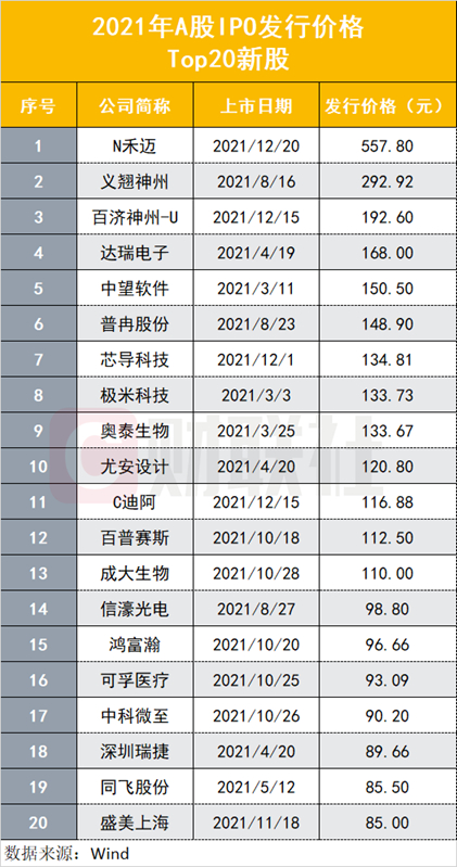 今年发行价排名前10的新股还有:达瑞电子(168.00元)、中望软件(150.50元)、普冉股份(148.90元)、芯导科技(134.81元)、极米科技(133.73元)、奥泰生物(133.67元)和尤安设计(120.80元)。