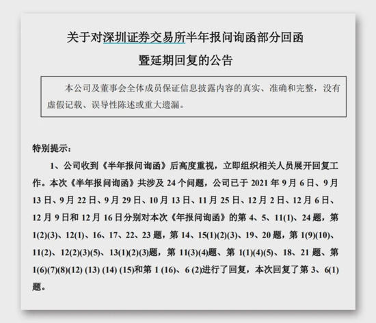 公告显示,*ST美尚《半年报问询函》共涉及24个问题。公司自9月6日以来已分10次对相关问题进行了回复,但由于本次问询函剩余问题所涉及的数据较多,公司需进行逐项核实且需要审计机构核查并发表意见,所以《半年报问询函》涉及的部分问题,公司将延期于2021年12月30日前完成回复并披露。