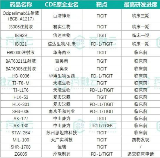 截止发稿前,我国已有6款TIGIT单抗进入临床阶段,有2款TIGIT双抗进入临床阶段或获批临床。