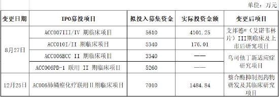 此外,值得一提的是,截至项目变更日,艾迪药业对ACC006的两个临床项目投入均为零。
