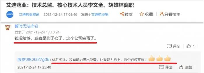 “钱没给够,或者是伤了心了,这个公司完蛋了。”12月27日,一位投资者在艾迪药业的股吧里留言感慨,但是另一位投资者认为,“优胜劣汰,没有能力腾出位置,让有能力的上,这个必须支持!”