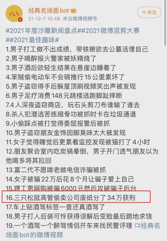 因为贪腐手段过于“沙雕”,还登上了当时微博热搜第五。