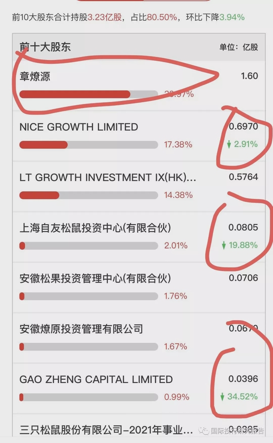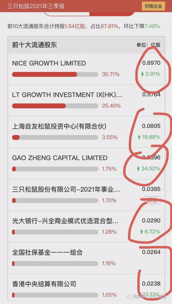 根据三只松鼠披露, 2020年7月8日至2021年1月28日,NICE GROWTH LIMITED及其一致行动人GAO ZHENG CAPITAL LIMITED合计减持公司股份约1249.79万股;2021年2月2日至2021年9月2日,二者又合计减持公司股份约1341.54万股,减持均价最低为41.53元/股。