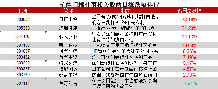 抗幽门螺旋杆菌概念股纷纷走强