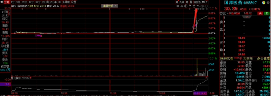 临近尾盘,国邦医药快速拉升,10分钟内完成封板。