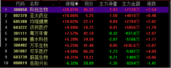 最后让我们来看下抗幽门螺杆菌相关股近两日涨跌幅排行情况: