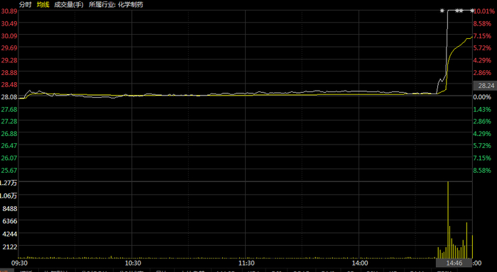 国邦医药1月6日涨停,当日股价报涨10.01%至30.89元/股。界面新闻获悉,国邦医药于2021年8月实现A股上市,主要从事医药及动物保健品领域相关产品的研发、生产和销售。1月6日下午14时40分左右,该公司回复投资者问题称,克拉霉素制剂是目前治疗幽门螺杆菌主流联合方案中的重要组成部分;而克拉霉素是公司主要的医药原料药之一,销往国内国际主要克拉霉素制剂生产商,公司与雅培集团就克拉霉素半制剂的合作生产在积极推进中。这一发言后,国邦医药股价尾盘急速拉升并触及涨停线。