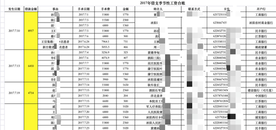 红星资本局注意到,艾芬贴出的四份名单均以“借支季节性工资台账”命名,手术日期集中在2017年-2019年间,患者的病种包括飞秒波差、白内障、全飞、角膜塑形镜等相关眼科手术,手术费从1000元到13000元不等,而涉及“转介人”的金额约为每笔手术费的6%-15%。