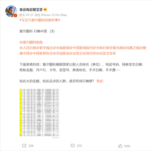 爱尔眼科陷回扣风波:艾芬微博晒回扣流水,涉事医院高管称当地纪委早已调查处理