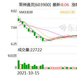 1月10日,莱绅通灵以上涨2.81%报收8.06元。