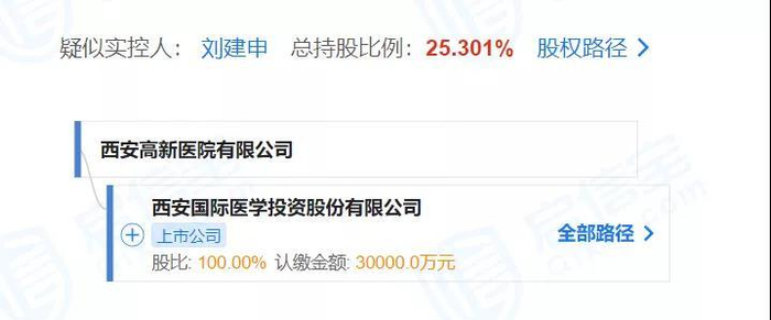 据中新经纬,西安高新医院官方微信公众号的账号主体为西安高新医院有限公司。启信宝显示,西安高新医院有限公司正是A股上市公司西安国际医学投资股份有限公司(下称国际医学)的子公司。