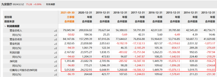 2021年前三季度,九安医疗营收7.90亿元,同比跌50.82%,实现归母净利润5012.8万元,同比跌86.19%。