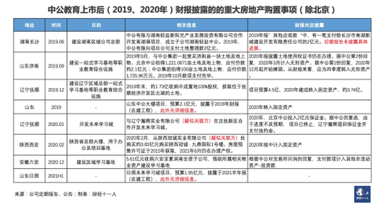 2018年上市后,中公教育频频购置房地产。在山东济南、辽宁抚顺、陕西西安、北京昌平区及怀柔区等多地置办土地、房产,用于建设自己的学习及办公场所。